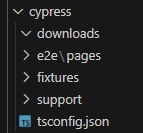 Na de installatie is er niet alleen een Cypress directory aangemaakt, maar ook zijn er een aantal nieuwe mappen en bestanden aangemaakt. Zoals: een tsconfig.json bestand met de configuratie voor alle TypeScript bestanden in de directory. En directories zoals: e2e (voor alle end-to-end tests), support (voor aangepaste commando’s en andere helpers), fixtures (testbestanden zoals: json-bestanden, afbeeldingen, etc. die nodig zijn voor de tests). Iedere test in Cypress is een TypeScript bestand dat te herkennen is aan de extensie: cy.ts