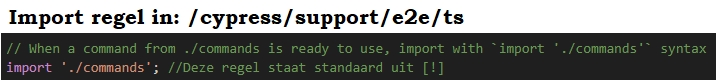Een tweede issue was wanneer er gebruik wordt gemaakt van Commands dat Cypress afweet van het bestaan van een Custom Command (zoals byTestId hierboven) door middel van een namespace en interface.
